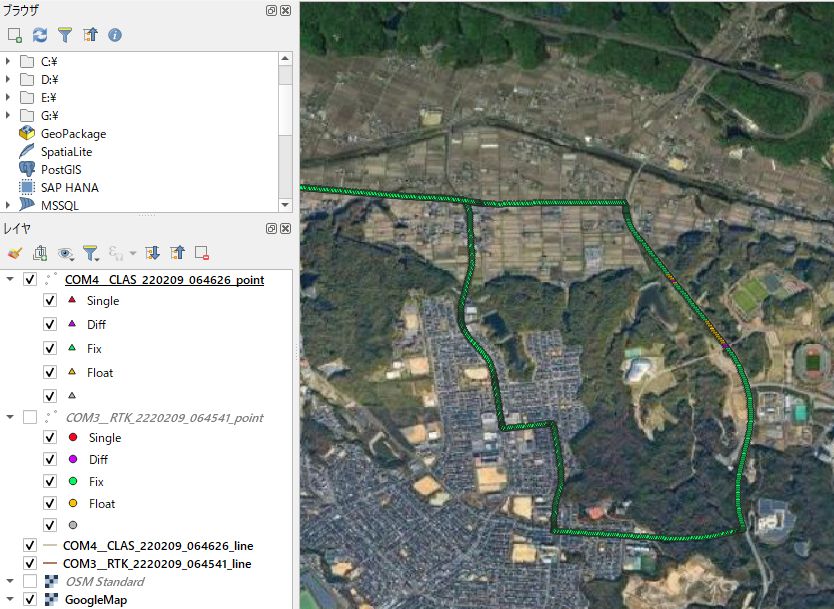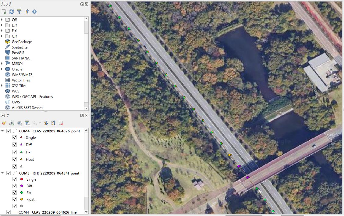 CLASはRTKに準じていますので、通常の移動速度では問題ない筈ですが、その確認と、衛星からの電波が瞬断した後の回復時間がどうなるかのチェックです。