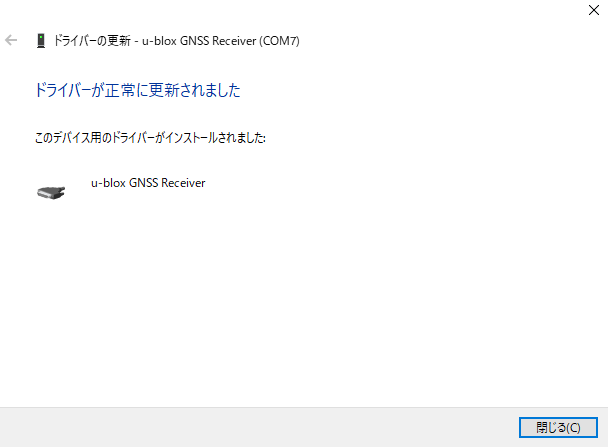 u-bloxはWindows10ではこのMicrosoftの標準ドライバをインストールする事を推奨しています。