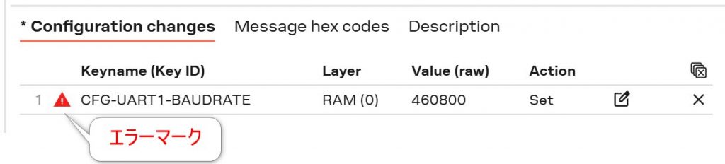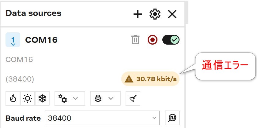 ボーレートを設定した時はこのエラーマークが表示されますが問題ありません。