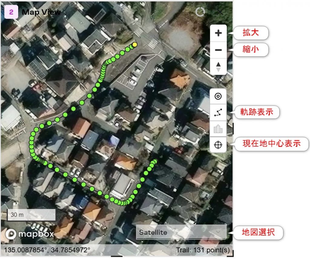 Map Viewの画面は当初地図上での位置が表示されませんが、インターネットに接続されていれば、地図画面をクリックすると表示されるようになります。